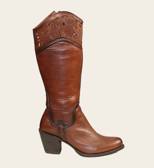 Botas Caballo Dorado Cuero Porcino Vaquero Mujer